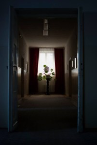 Bardzo plastyczne zdjęcie, niczym kadr z filmu. Światło ładnie rozprowadza się po brzegach ścian, zaciekawia ledwo zauważalna smuga światła z półotwartych drzwi.